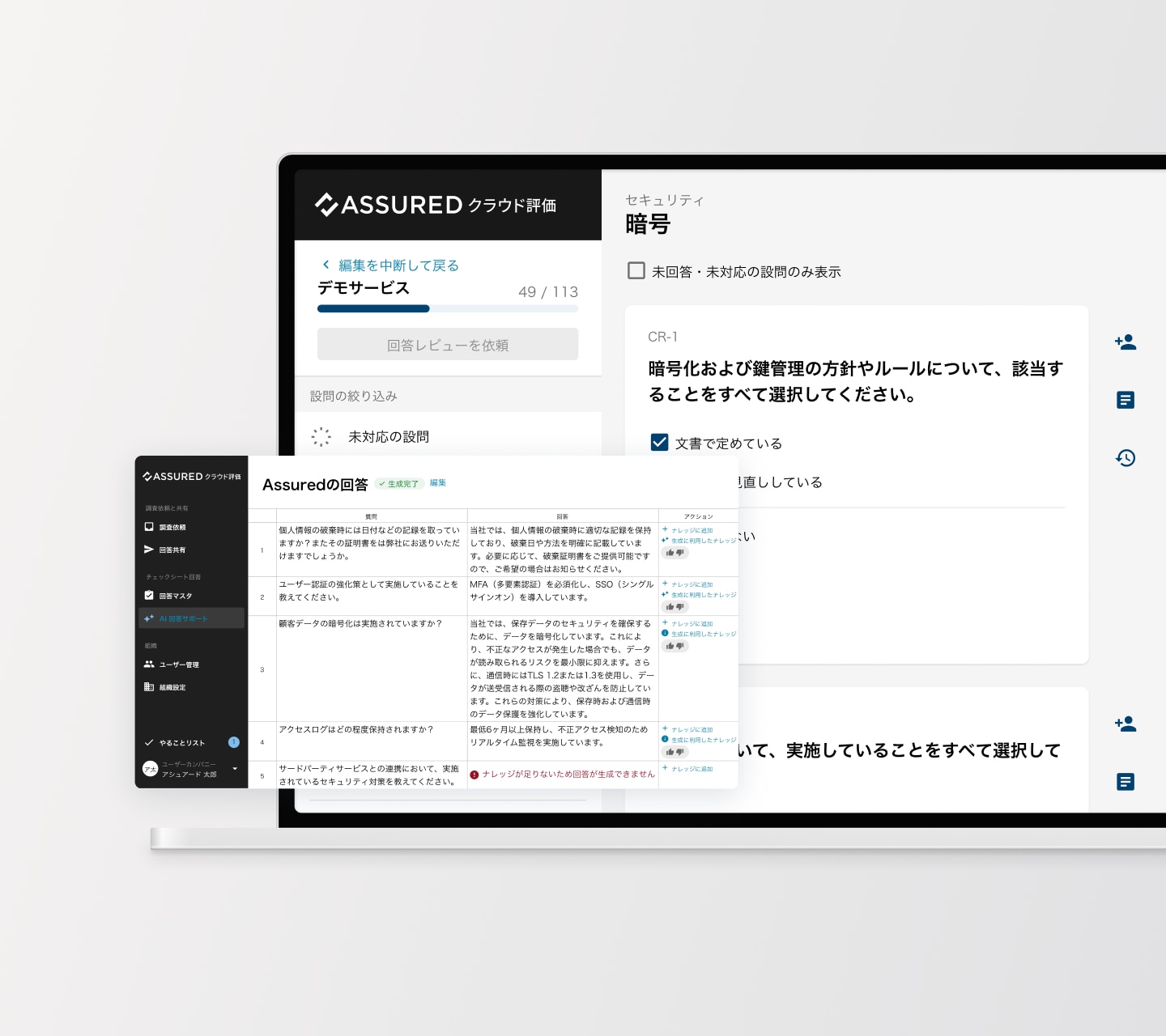 この度は、クラウドサービスのセキュリティ信用評価「Assuredクラウド評価」のセキュリティ調査にご対応いただき、誠にありがとうございます。