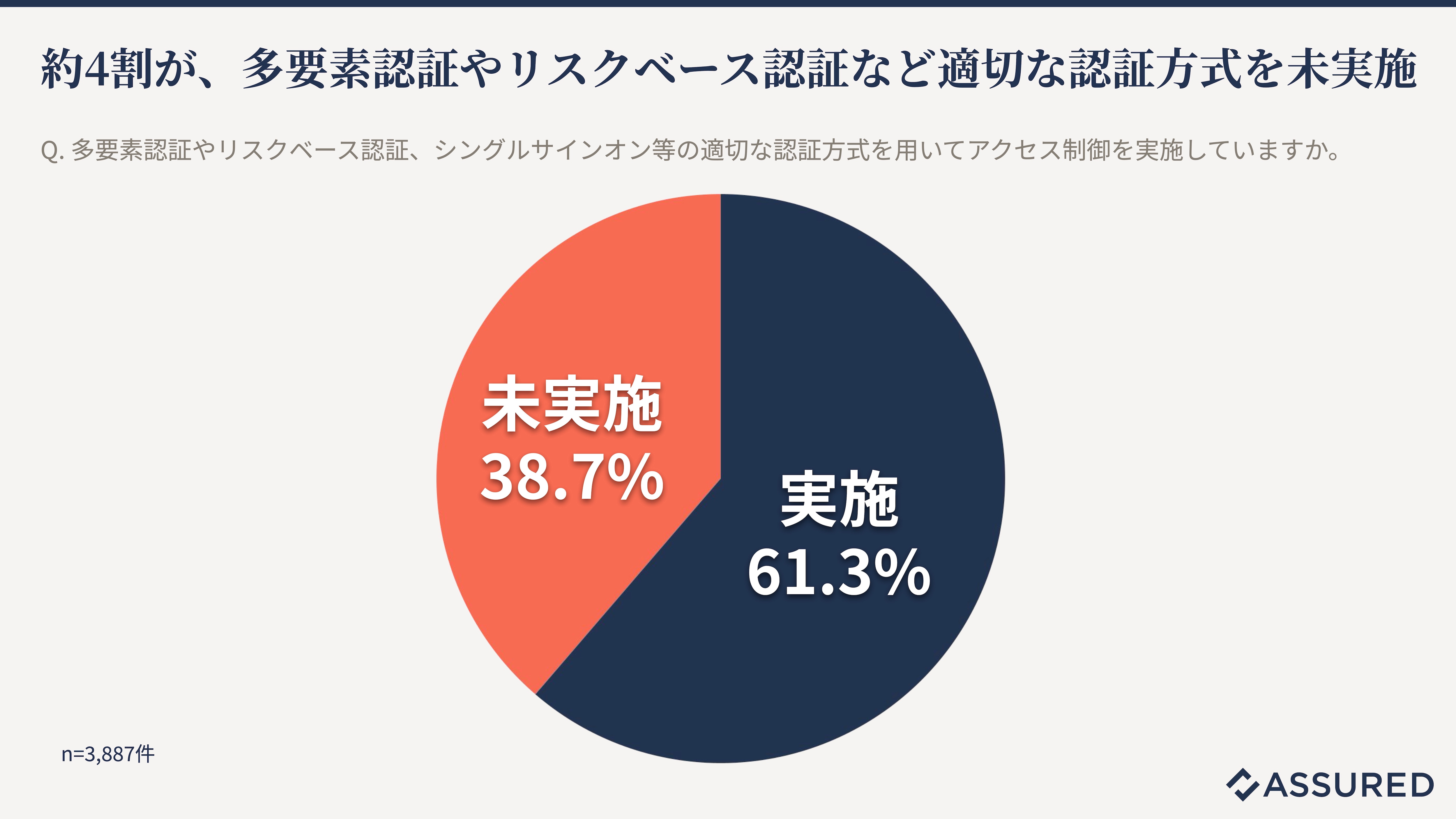 約4割が、多要素認証(MFA)やリスクベース認証といった適切な認証方式を未実施