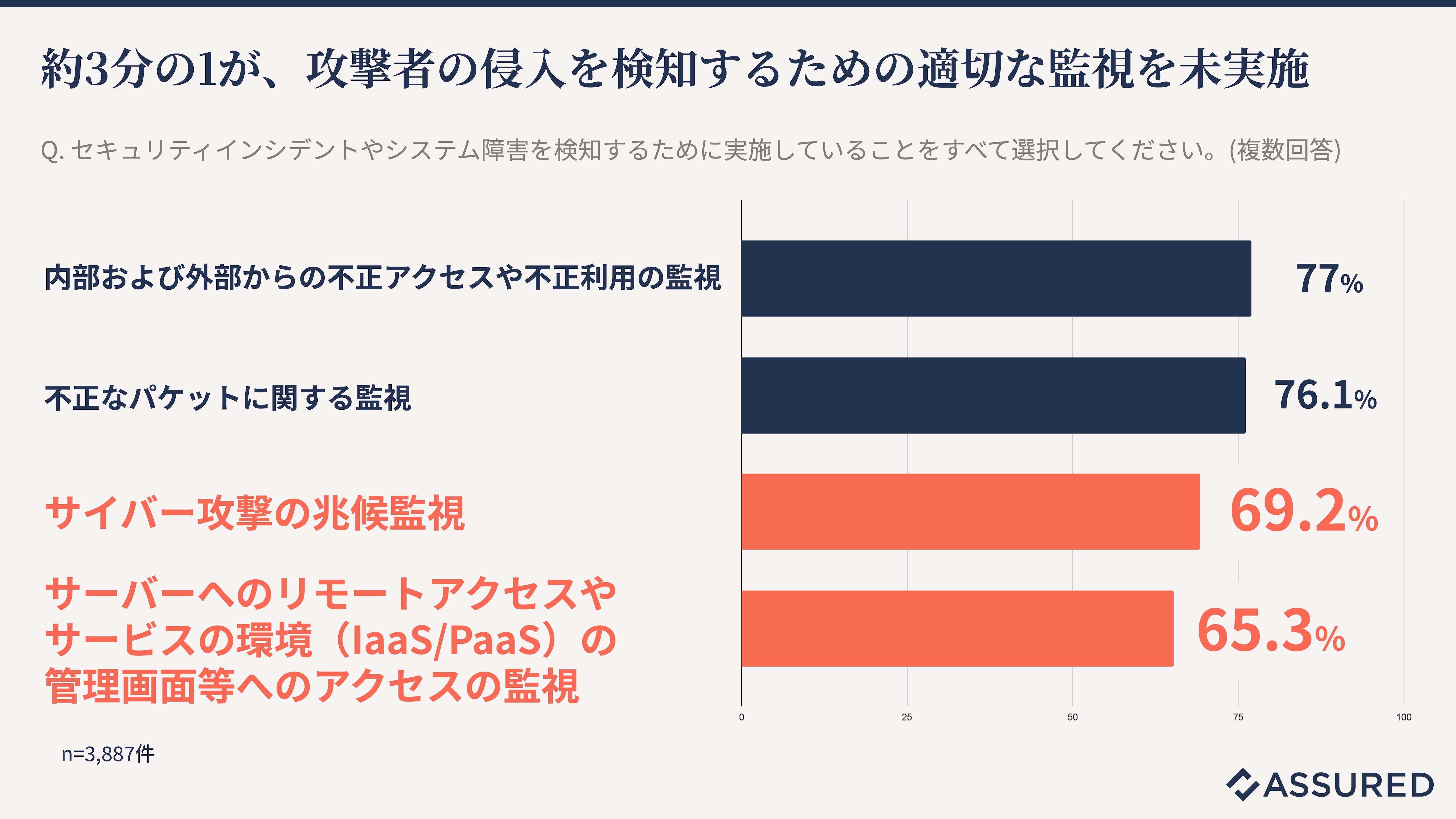 攻撃者の侵入を検知するため、適切な監視を実施できているのは約7割