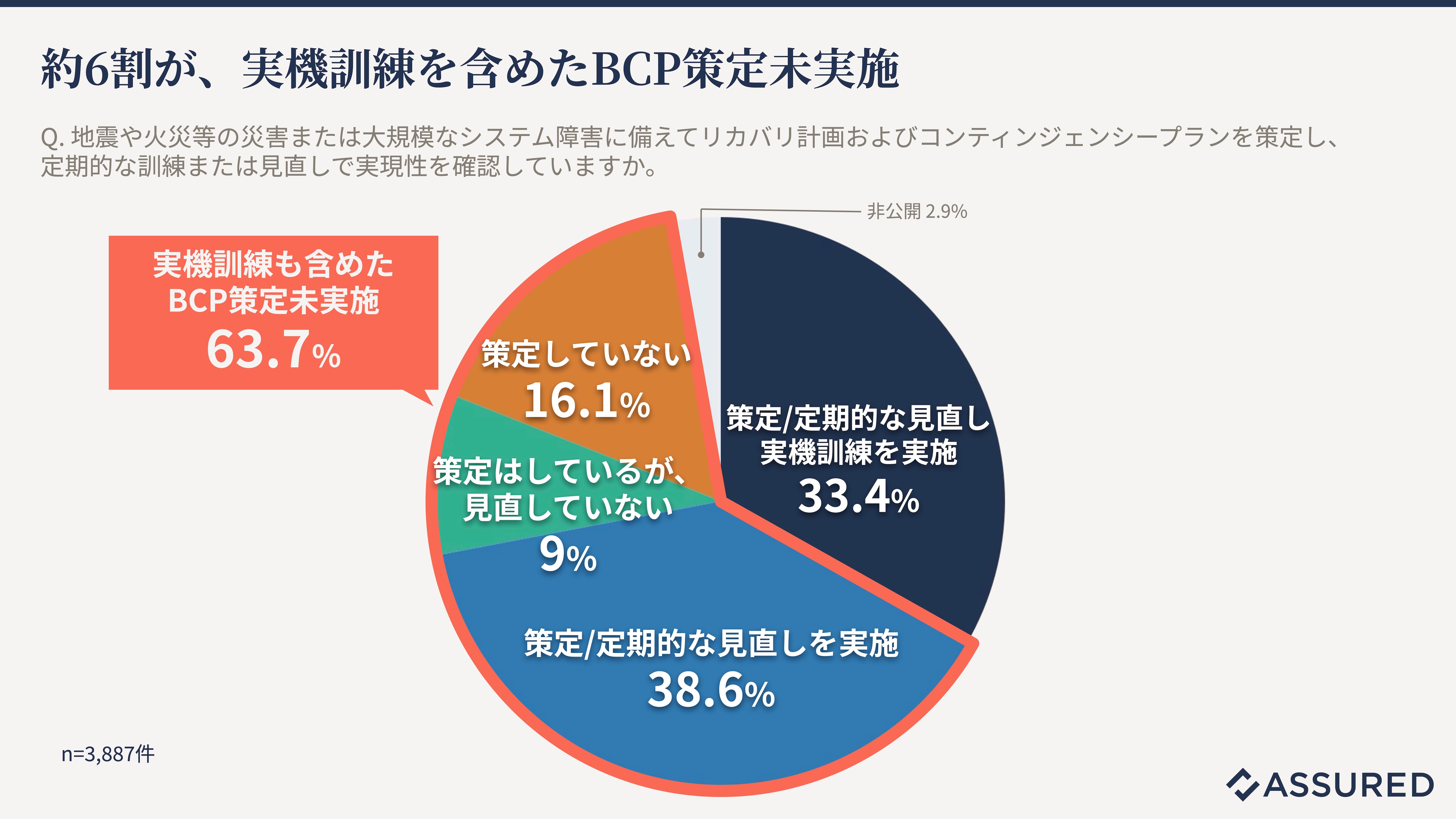 - 復旧に失敗するリスク: リストアテスト(復旧訓練)を適切に行っている企業は48.1%と半数以下です。ランサムウェアが感染から想定時間内にシステムを立ち上げ直せるかどうかの判断には、リストアテストの検証が不可欠です。利用企業としても利用前提としているSLA, SLOが維持できるのかどうか、という視点から確認することが重要です。