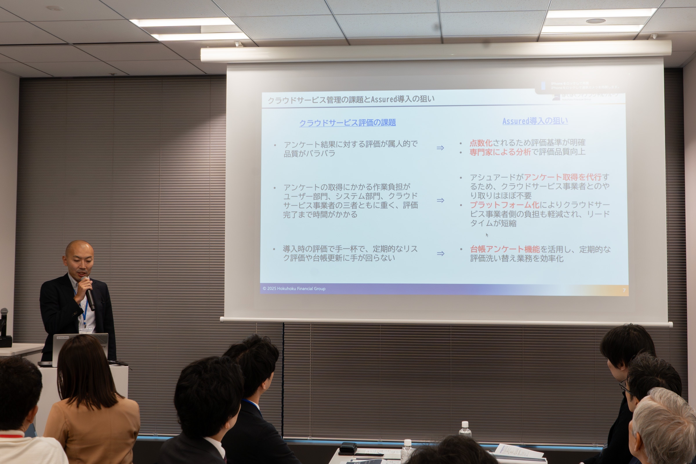 講演の最後には、「利用拒否先への対応」や「定期評価の効率化」「サードパーティリスク全般への評価対象の拡大」といった、ユーザーだからこその率直な期待や要望も語られました。これもまた、アシュアードとユーザーが一体となって課題解決に取り組む本会ならではの光景でした。